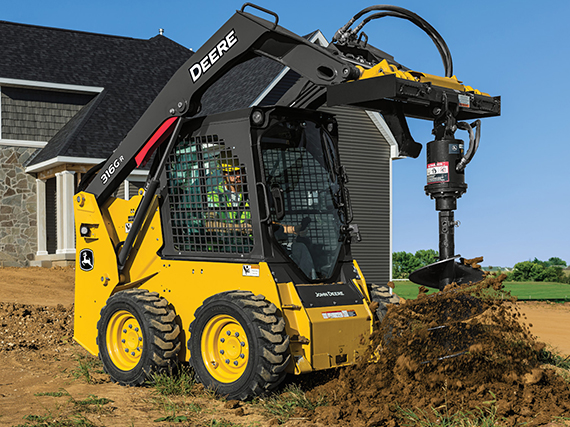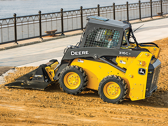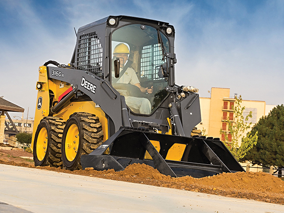 - Radial lift boom offers more reach at mid-range lift heights, making it good for digging, grading, and backfilling