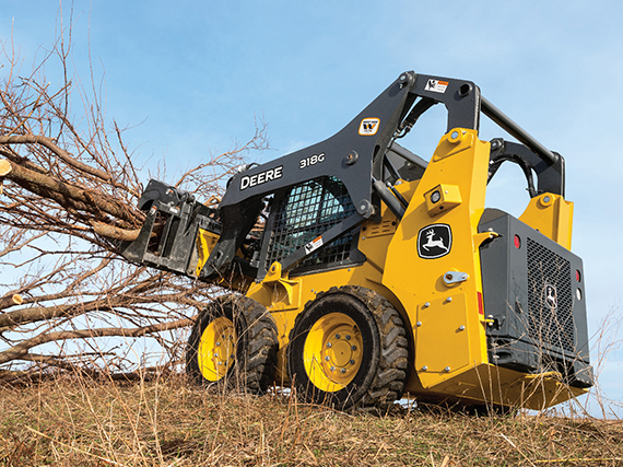 - Radial lift boom offers more reach at mid-range lift heights, making it good for digging, grading, and backfilling